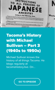 Tacoma Historian Michael Sullivan is a popular past guest on the Move To Tacoma Podcast. You can hear him talk about the history of Tacoma’s former Japantown in this episode on Tacoma’s history by clicking the image below: